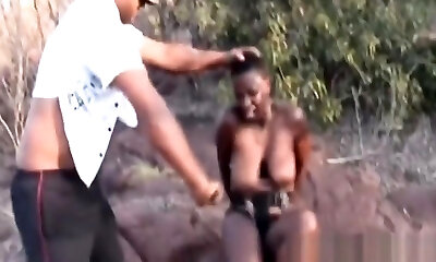 Busty African slaves fellating off masters outdoors