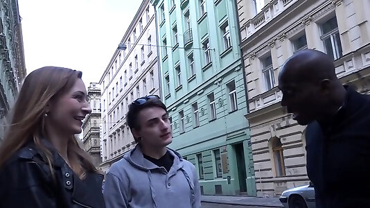 Ravishing blondie stunner is prepared to suck a monstrous, ebony prick and perceive it inwards her cunny