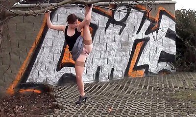 Long Legged pretty and flexible ebony cheerleader gets nailed from behind